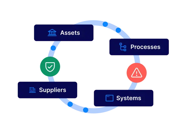 Relazioni tracciabili tra risorse, processi, sistemi e terze parti per mostrare dove sorgono i rischi e dove si applicano i controlli.