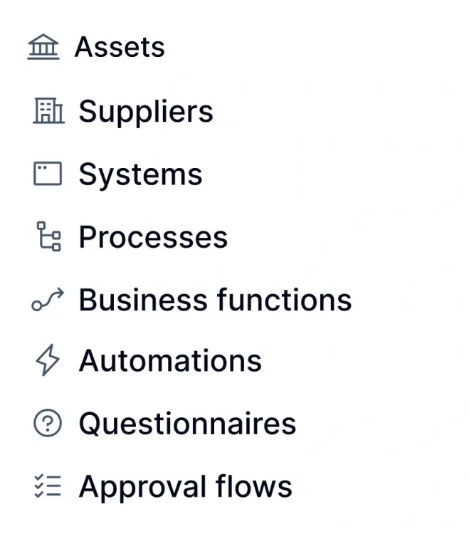 Un GRC efficace dipende dalla comprensione di come le dipendenze organizzative influenzano il rischio, la responsabilità e l'esposizione normativa. Formalize collega risorse, processi, sistemi e fornitori in un unico modello, in modo che le decisioni di governance siano sempre basate sulla realtà operativa.