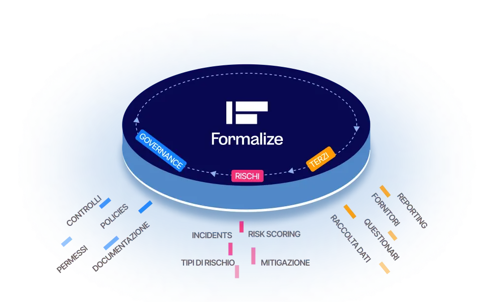 Formalize fornisce una soluzione comprensiva per la gestione della conformità; tutto, dalla gestione dei rischi e degli incidenti alla gestione dei dati di conformità, in una singola piattaforma integrata. Con caratteristiche interconnesse all'ottimizzazione e flussi di lavoro compliance automatizzati, Formalize offre una completa personalizzazione ai tuoi requisiti specifici, assicurando un perfetto ed efficiente processo di gestione della conformità.